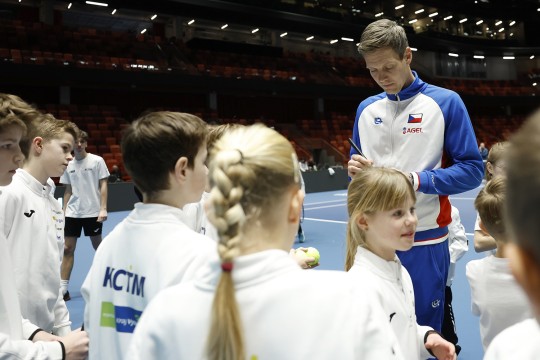 Tomáš Berdych si našel čas na povídání s dětmi, rozdával úsměvy i cenné zkušenosti.